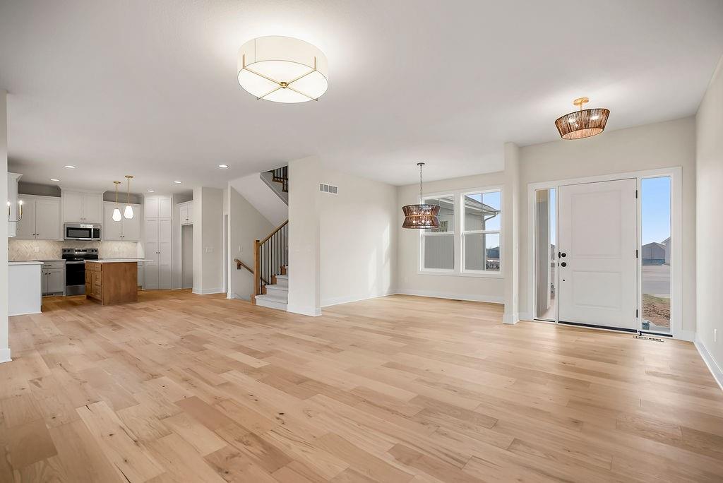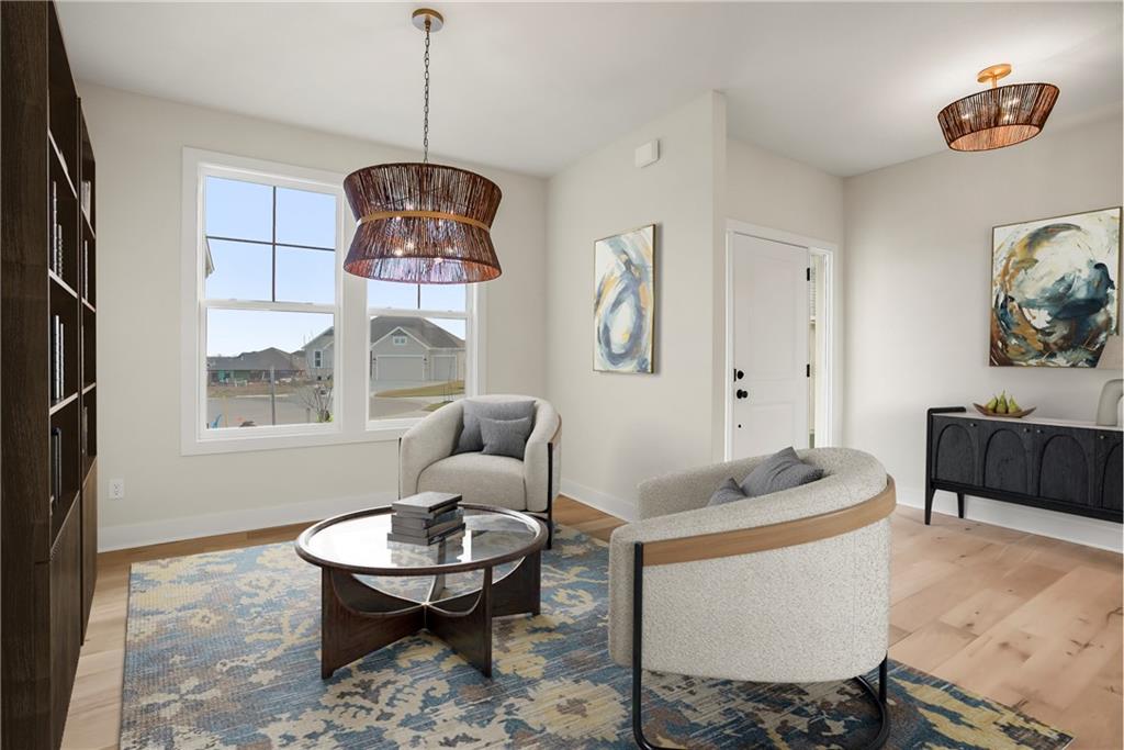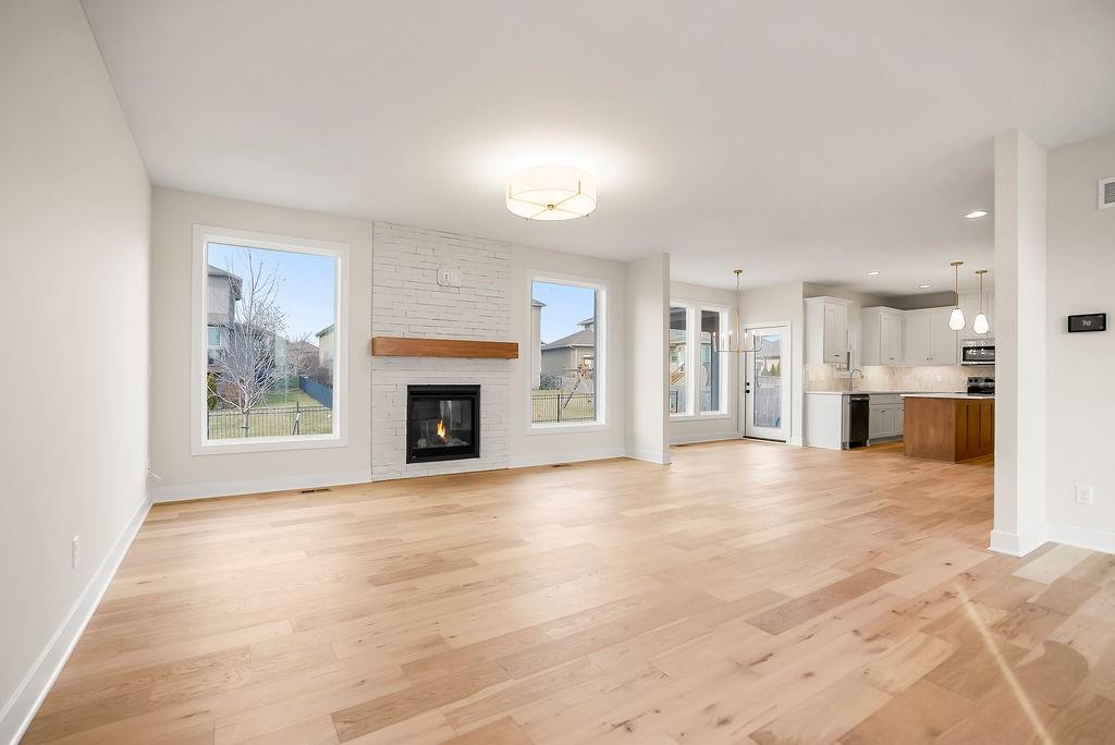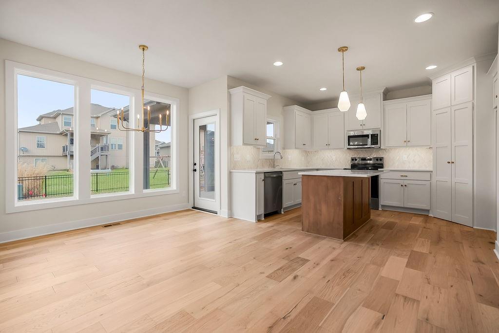MOVE IN READY!! The Madison (Elevation 3), by Rodrock Homes, offers an open floor plan featuring floor to ceiling stone wrapped fireplace in the great room. Spacious kitchen with large pantry. All bedrooms including the primary are located on the second floor, along with laundry room. Basement includes 9′ walls with 3/4 bath stub-in. Taxes and Measurements are estimated. Buyer or Buyer agent to verify. All in the coveted Stonebridge Trails, A Rodrock Community, with Amenities that provide a wonderful lifestyle and close to Heritage Park. There are 2 clubhouses, 1 with work out facility, 4 pools, playgrounds, basketball and tennis courts and nature trails through out the neighborhood. Nearby schools include Prairie Creek Elementary (~0.6 mi), Woodland Spring Middle (~1.0 mi), and Spring Hill High (~5.5 mi). Daily conveniences are close by, including Natural Grocers (~4.2 mi), Price Chopper (~1.2 mi), and local coffee spots (~1–1.2 mi). Taxes, square footage and measurements are approximate, buyer to verify.