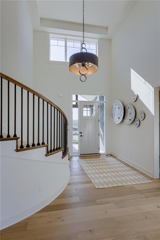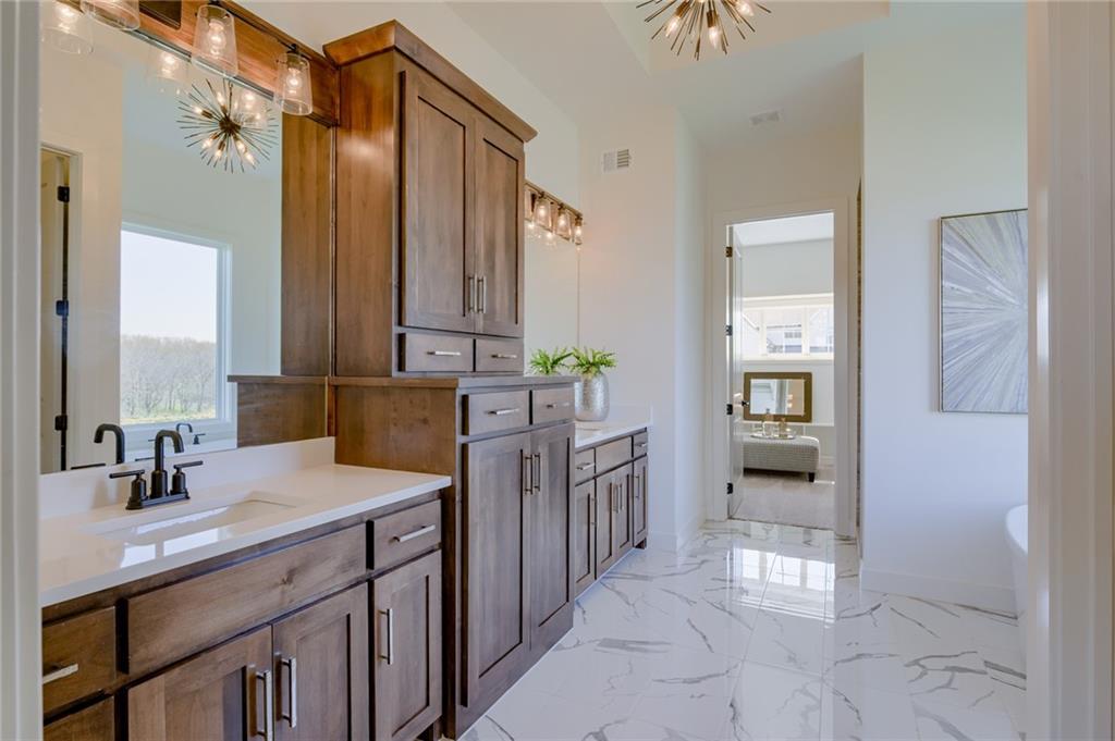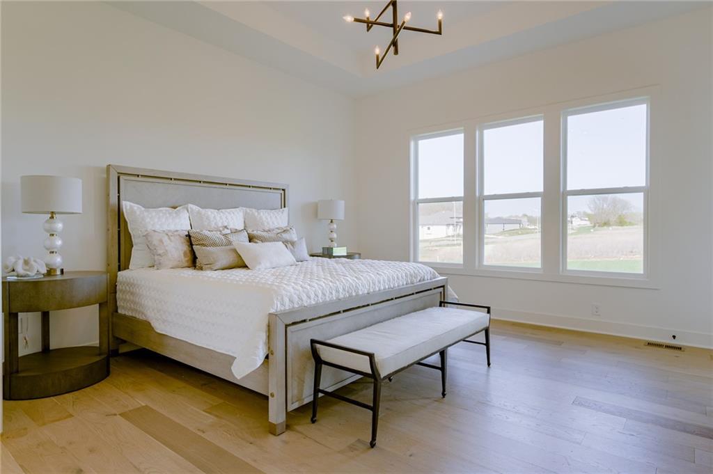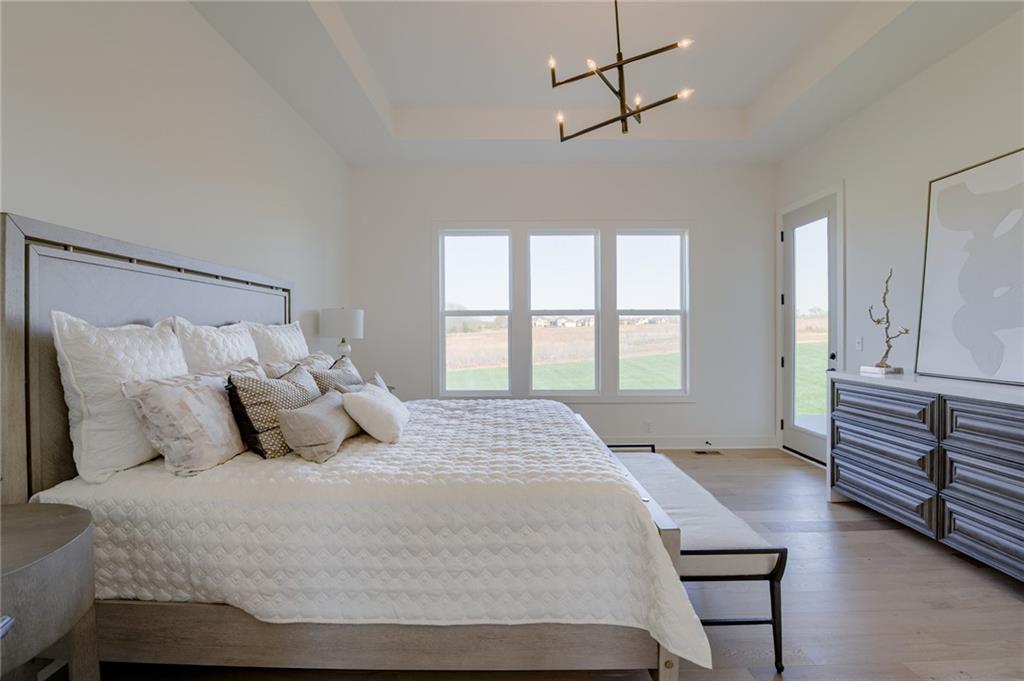 The El Dorado by Rodrock Homes defines modern living at its best. The curved stairway creates a striking focal point, and large windows and high ceilings make for an inviting space. The primary bedroom is conveniently located on the main floor and has a luxurious bath, a huge closet, and an adjacent laundry room. The chef’s kitchen is equipped to handle weeknight dinners or weekend entertaining. The large great room opens to the covered patio, making this the ideal space for family gatherings. The study on the main floor is the perfect private retreat. This home includes a bevy of upgrades such as engineered hardwood floors, upgraded quartz counters, additional stained trim and details. Award winning Blue Valley Schools nearby! This builder is finishing this home, and move in can be scheduled for March/April 2026 (as of 2/20/26). Some photos are of a former model home, not the home for sale.