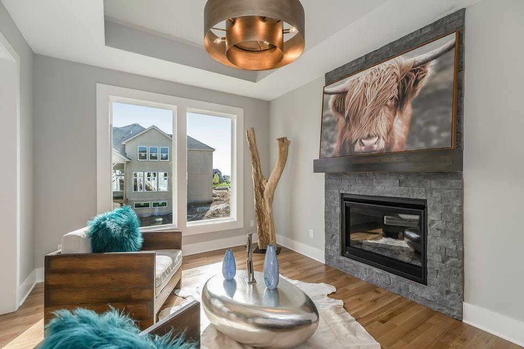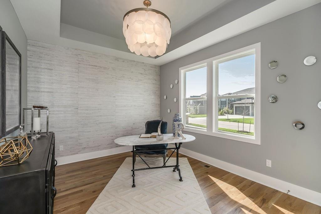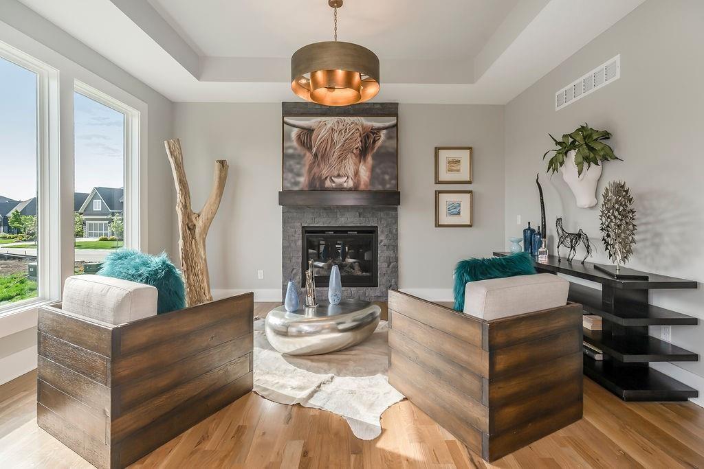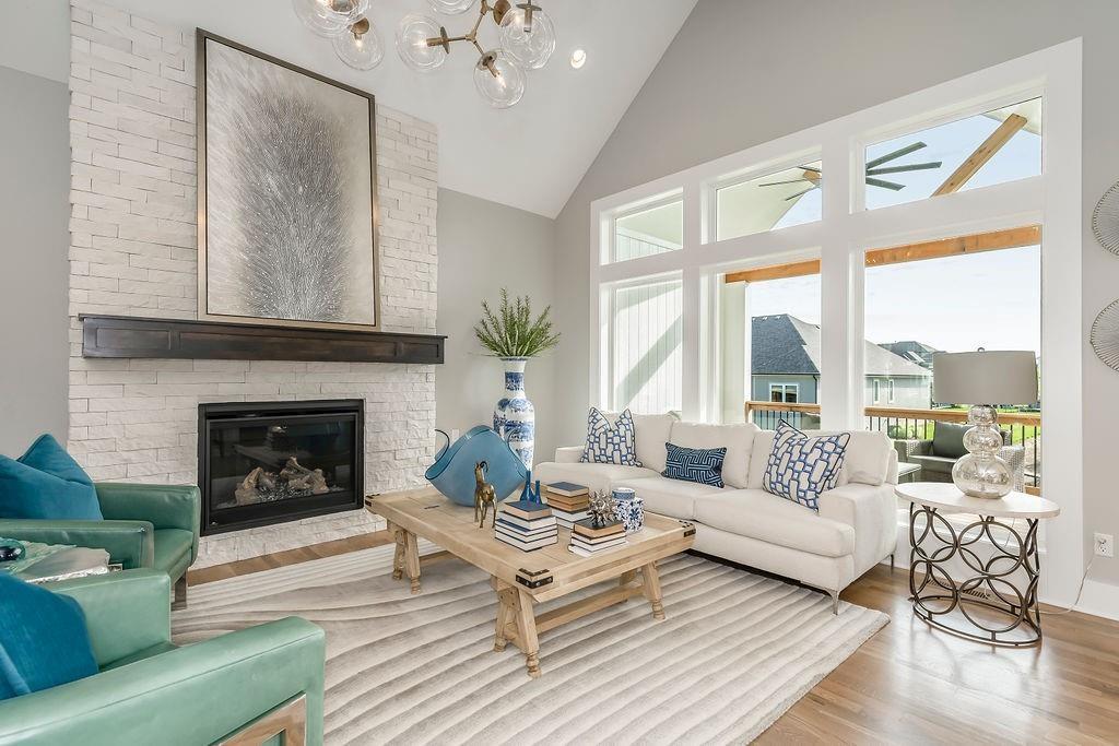 DESIGNER SHOWCASE HOME – 60 DAYS TO COMPLETION! The striking “New Hampton” reverse 1.5-story by Rodrock Homes blends modern design with everyday comfort. A professional interior designer is curating finishes for this showcase home, featuring an open layout with soaring great room, fireplace, and gourmet kitchen with walk-in pantry. Main-level owner’s suite offers a spa bath and large walk-in closet. Located in Sundance Ridge within Blue Valley Schools, near the future Camp Branch Park. The Village amenities: relaxation pool, clubhouse, fitness center & playground; future phases add 2nd pool, indoor gym & pickleball. Move-in ready soon!