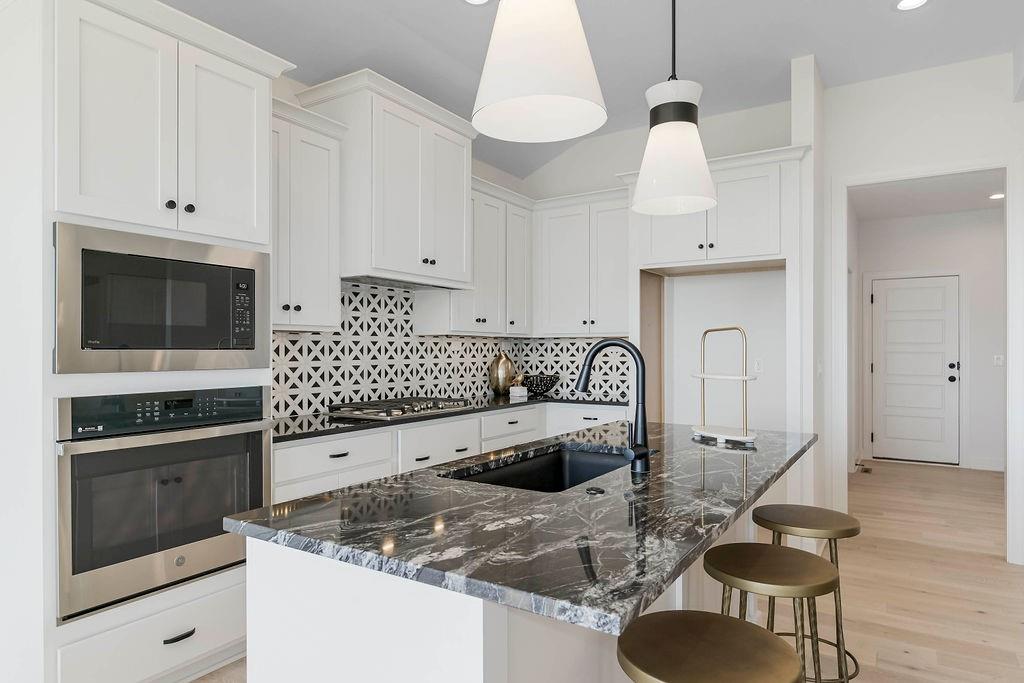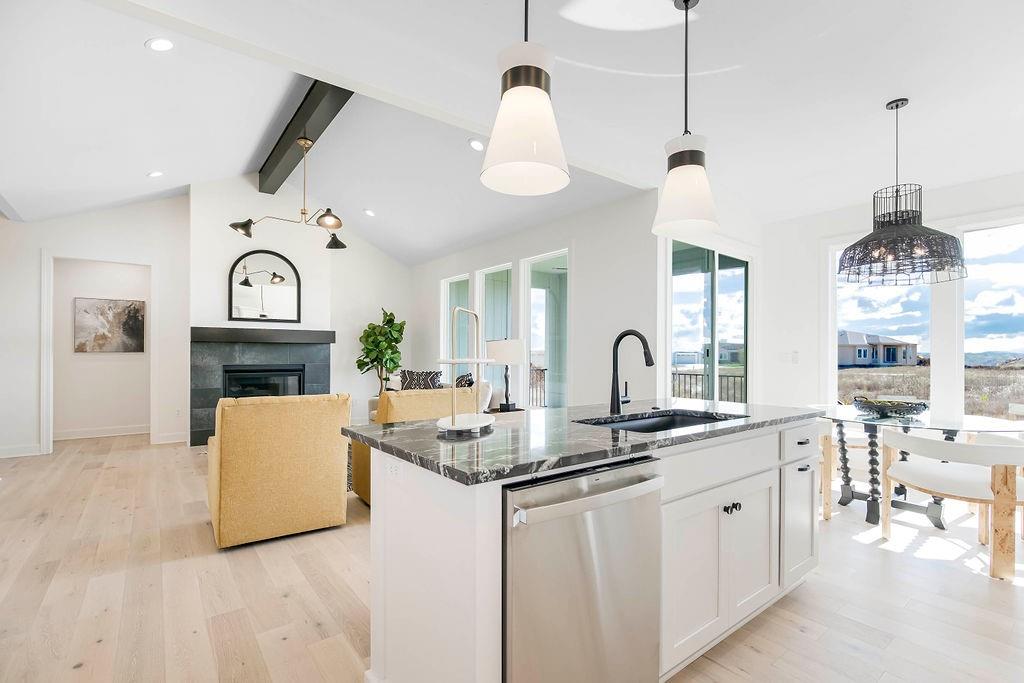 BODROCK HOMES VILLA HOME “THE CAMAS” IS A 3 BEDROOM 2.5 BATH. THIS HOME IS ON A WLAKOUT LOT WITH AN EXPANSIVE VIEW TO THE SOUTH. THIS HOME IS DESIGNED FOR EVERYDAY LIVING AND THE ENJOYMENT OF ENTERTAINING FAMILY AND FRIENDS. THIS REVERSE 1.5 STORY PLAN BOASTS AN APPEALING EXTERIOR WITH STONE PILLARS AND A COVERED FRONT PORCH. ONCE INSIDE THE FOYER, ENGINEERED HARDWOOD FLOORS FLOW THROUGHOUT THE MAIN LEVEL, WITH CARPET IN THE PRIMARY BEDROOM. OPEN AND SPACIOUS PLAN WITH VAULTED CEILING WITH FIREPLACE TO THE CEILING, DRY BAR, OPEN CONCEPT KITCHEN AND DINING AND WALK-IN PANTRY. PRIMARY BEDROOM AND BATH ON THE MAIN LEVEL WITH FREESTANDING TUB AND ZERO ENTRY SHOWER. LOWER LEVEL IS LARGE WITH FAMILY ROOM WITH 2 ADDITIONAL BEDROOMS AND BATHROOM. MISSION RANCH IS A BEAUTIFUL PLANNED NEIGHBORHOOD WITH AMENITIES THAT INCLUDE A CLUBHOUSE WITH AN EXERCISE ROOM, PARTY ROOM, PLAYGROUND, POOL, SPORT COURT, PICKLEBALL, BOCCE BALL AND TRAILS AND AN ELEMENTRY SCHOOL IN THE NEIGHBORHOOD. THIS HOME IS ALSO LOCATED IN THE MAINTENANCE PROVIDED SECTION OF THE NEIGHBORHOOD. IN THIS SECTION FOTH NEIGHBORHOOD, WE WILL ALSO PROVIDE LAWN MAINTENANCE AND SNOW REMOVAL. MISSION RANCH IS CENTRALLY LOCATED TO THE HIGHWAY, SHOPPING AND ENTERTAINMENT. DON’T MISS WHAT WE HAVE TO OFFER. STILL TIME TO MAKE SELECTIONS ON THIS BEAUTIFUL HOME.