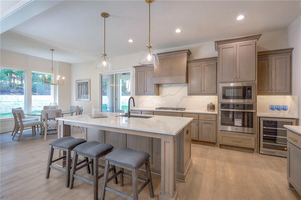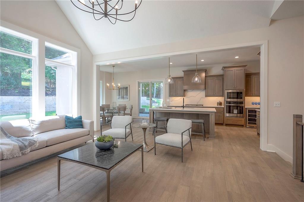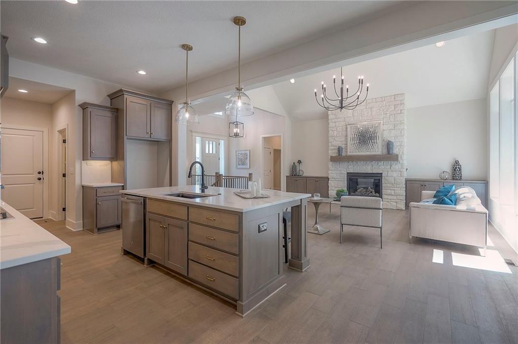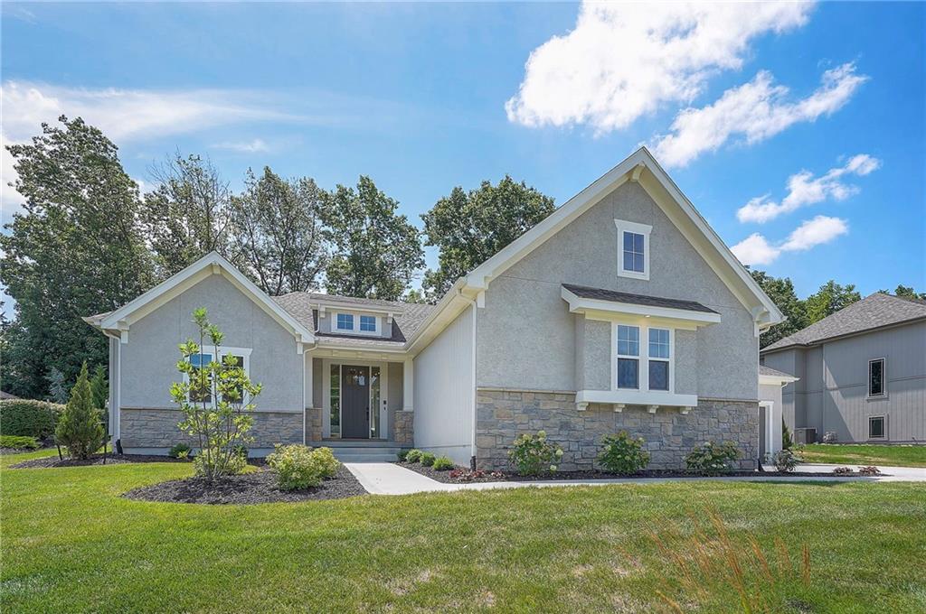 Yes! You read it correctly-this gorgeous brand new home provides a 4-car garage! Nestled on a tranquil wooded lot, this reverse also offers a perfect blend of serenity and luxury. This exceptional, award-winning floor plan by Rodrock Homes is THE FINAL OPPORTUNITY to own a brand new home in the secluded and treed hilltop community of Ridgestone Meadows. Step inside to discover lovely modern finishes and luxurious details, including soaring vaulted ceilings and elegant beams in the great room and a welcoming stone-to-ceiling fireplace. Open kitchen offers a spacious, functional center island, a beverage station with wine refrigerator and a generously sized walk-in pantry to accommodate all your culinary essentials! All built-in appliances are stainless steel, including the gas range. Enjoy a main level owner’s suite that delivers lovely views of your treed homesite. The luxurious ensuite bathroom provides a generous double-vanity, a dreamy soaker tub and a large walk-in shower with two shower heads. A super productive laundry room with sink, cabinets and hanging rod connects to the hallway and to the well-designed, custom walk-in closet of the owner’s suite. For your added convenience, the main level also includes a discreetly positioned second bedroom and full bathroom. Your lower level boasts a spacious family room with a convenient wet bar and built-in beverage refrigerator, plus a game table area. Two more bedrooms and another full bathroom provide ample space for both relaxation and privacy. Plus two good-sized storage rooms. Outside, embrace the enchanting tranquility of the treed lot, perfect for enjoying patio time in a nature-filled, park-like setting. This unique hilltop neighborhood is ideally located near a host of retail shops, restaurants and services, plus recreational amenities, like the county’s walking trails and Shawnee Mission Park with its lake beach, outdoor theater and so many more outdoor fun and lake time options. Your opportunity is here!
